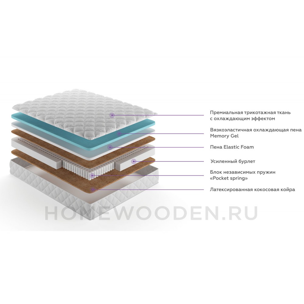 | Тип пружинного блока матраса | Независимый пружинный блок "Pocket Spring" |