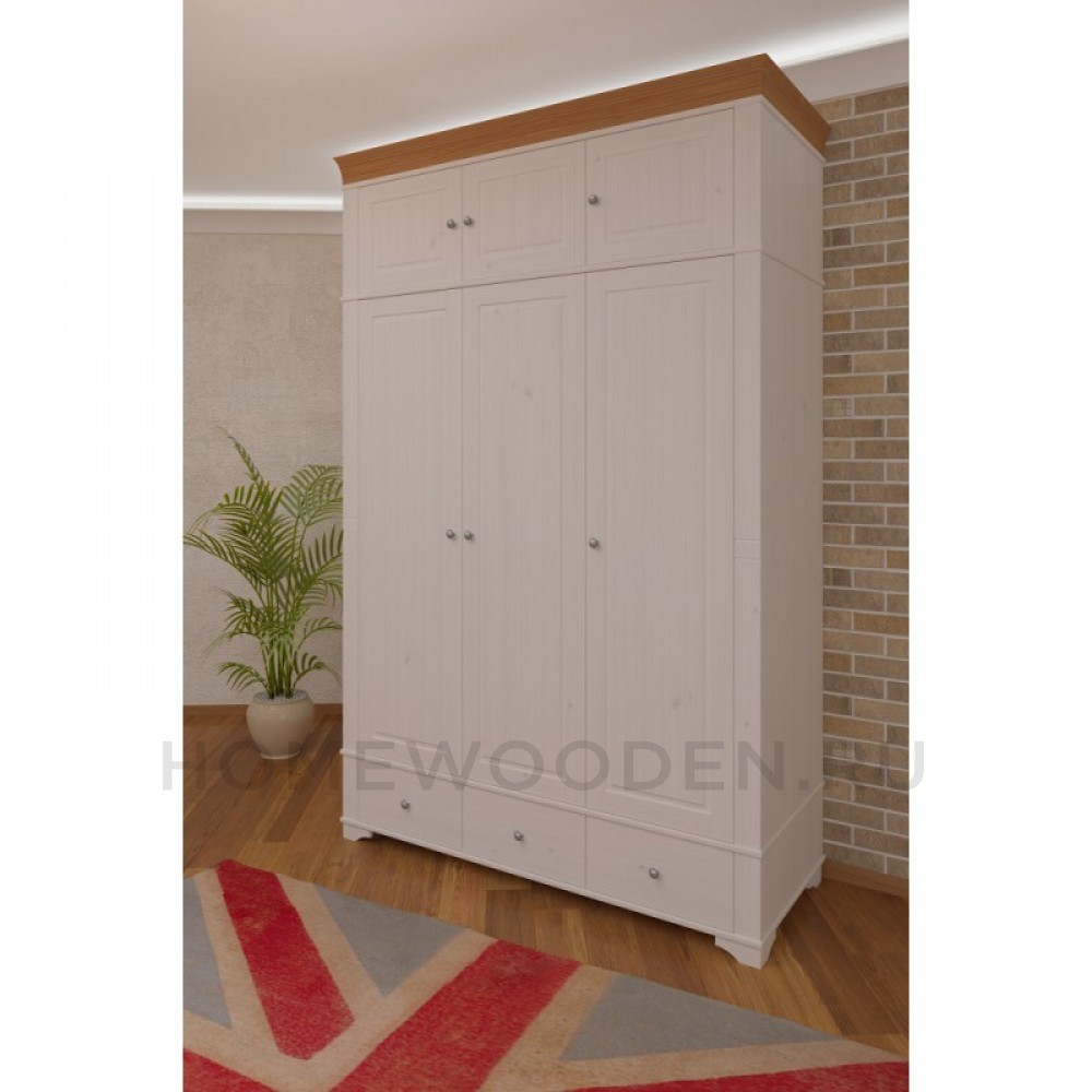 Для 3х дверных шкафов, имеет три дверки, два отделения. Левое отделение широкое, правое узкое. При установке на шкаф Бейли карниз шкафа переставляется на антресоль, общая высота шкафа с антресолью 245 см