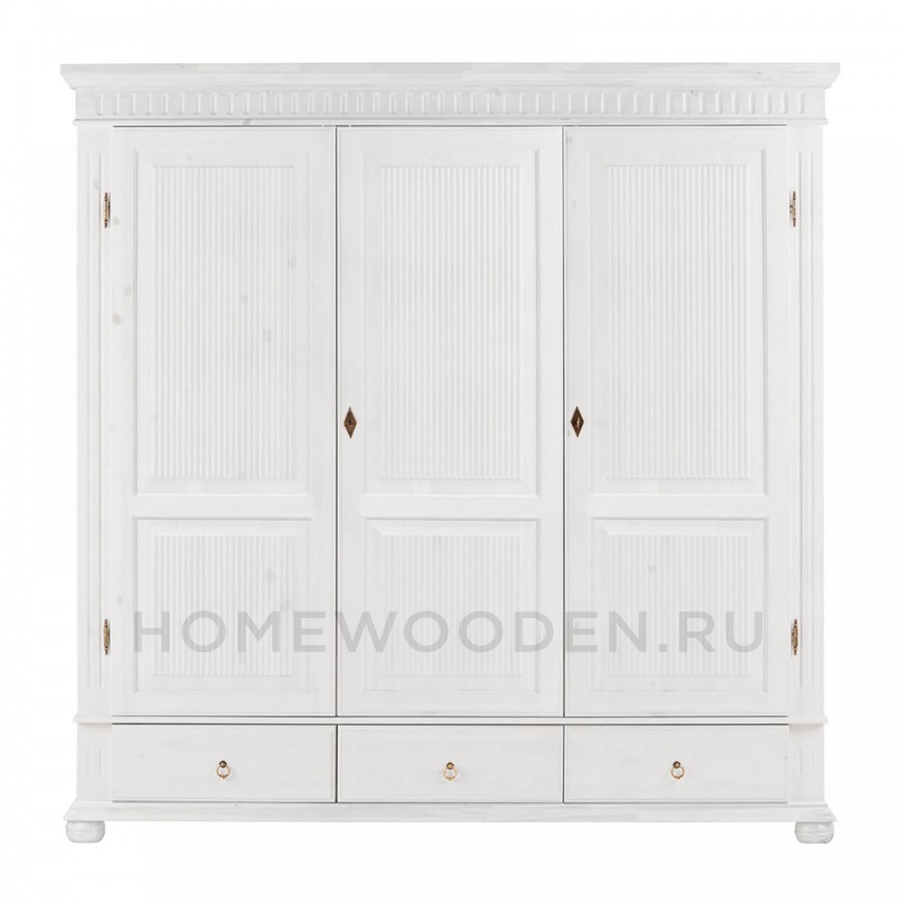 Шкаф “Хельсинки 3GT-M” с тремя распашными дверями надежно сохранит ваши личные вещи от пыли, шерсти животных и других неприятностей. Его даже можно запереть на ключ. Внутри есть большая секция для одежды со штангой и секция поменьше с 4 полками, а внизу гармонично расположены 3 выдвижных ящика.