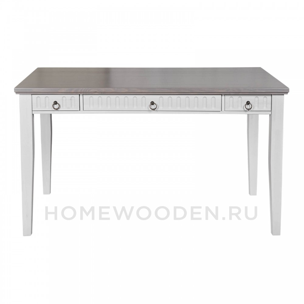 Белорусский простой и элегантный письменный стол “Хельсинки 03” станет украшением любой спальни или кабинета. Он выполнен из натурального массива сосны и оснащен тремя выдвижными ящиками. Имеет 4 цветовых решения: антик, белый, серый, колониал. Может быть дополнен мобильной тумбой, которая отлично под ним разместится.