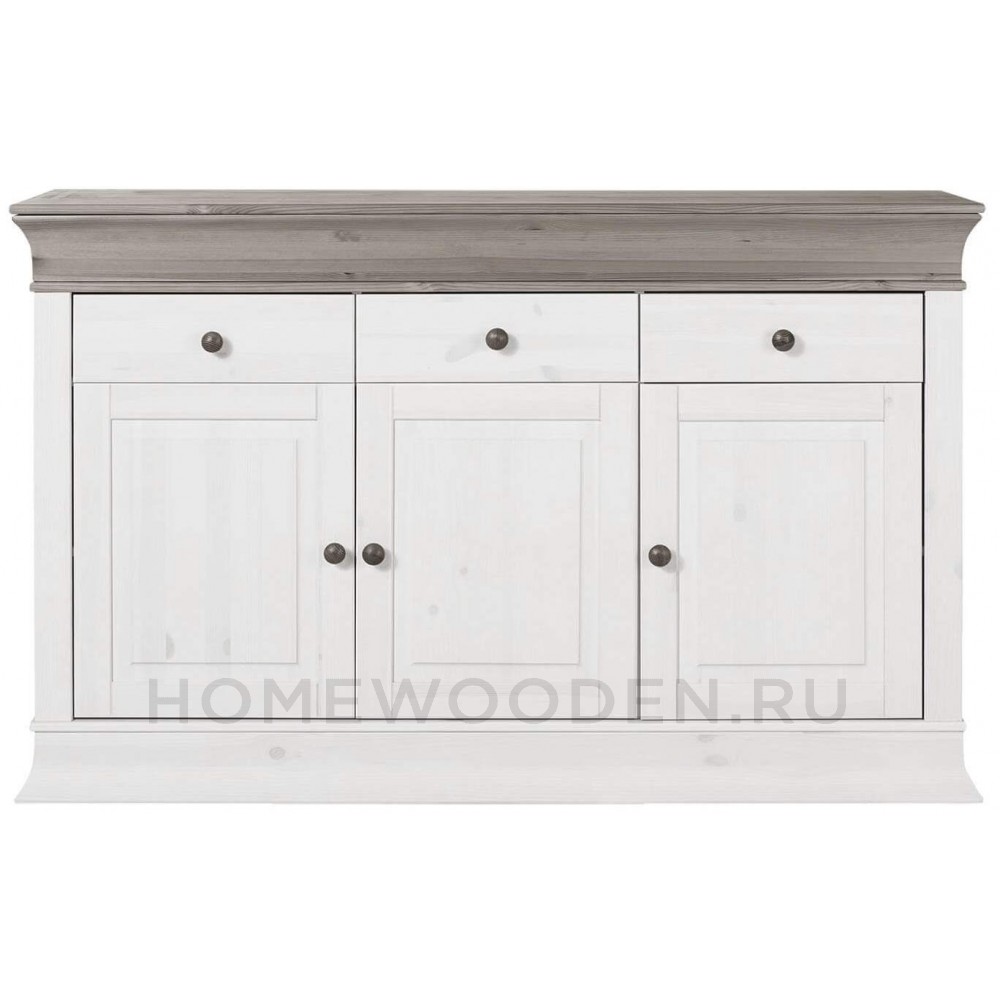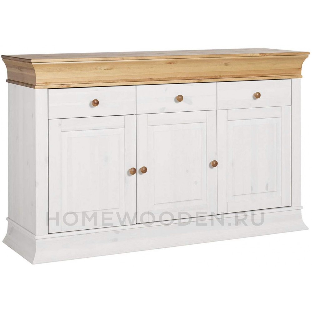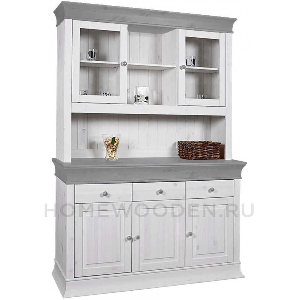 Предлагаем Вам привлекательный буфет "Бостон" из массива сосны для кухни или столовой. Две стеклянные двери с двумя отсеками по бокам и два открытых отсека обеспечивают пространство для блюд.