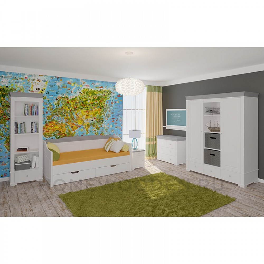 Пристенная диван-кровать, спальное место 90х200 см, боковые и пристенная спинки филенчатые, решетка из ламелей сосны в комплекте, два выдвижных ящика на шариковых направляющих полного выката.